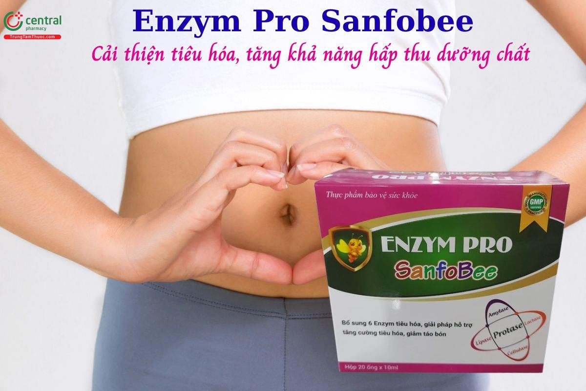 Enzym Pro Sanfobe với sự kết hợp của các enzyme tiêu hóa, axit amin và các vitamin nhóm B giúp cải thiện chức năng tiêu hóa, kích thích ăn ngon, tăng khả năng hấp thu dinh dưỡng của cơ thể. Ngoài ra sản phẩm còn hỗ trợ giảm nguy cơ táo bón nhờ chứa Fructose Oligosaccharide (chất xơ hoà tan).