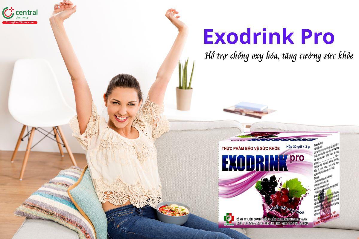 Exodrink Pro là sản phẩm hỗ trợ bổ sung chất chống oxy hóa, giúp tăng cường sức khỏe, góp phần hạn chế và làm chậm quá trình lão hóa, hỗ trợ duy trì thể trạng, phòng ngừa bệnh tật.