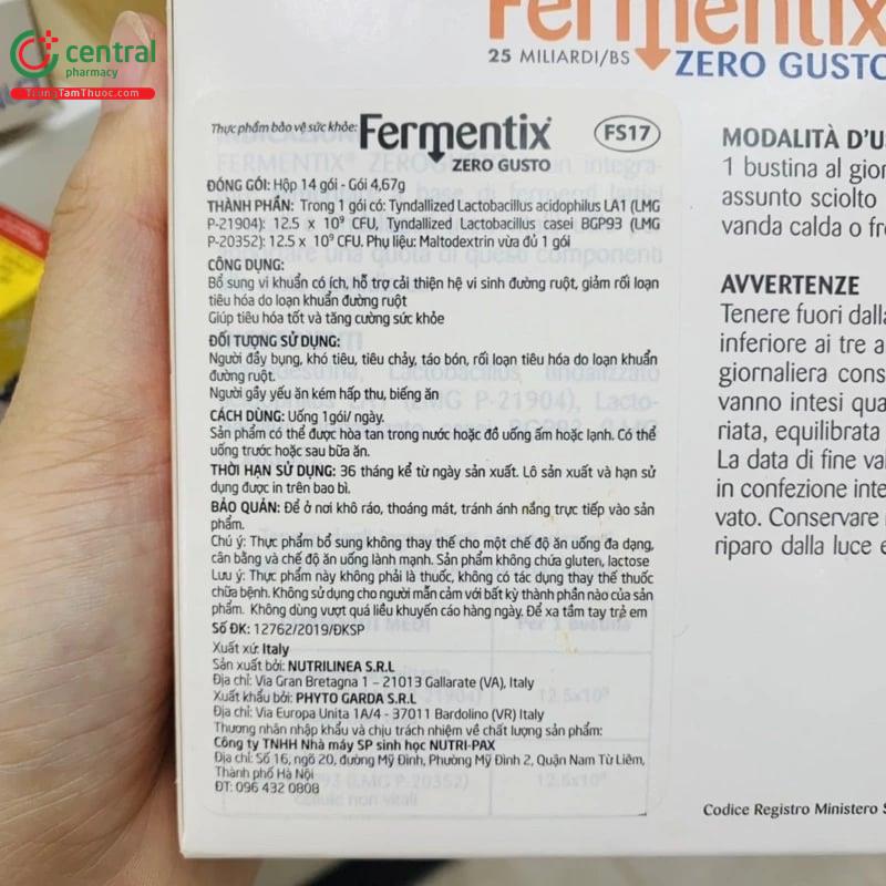 Fermentix Zero Gusto chính hãng hiện nay đang được bán ở nhà thuốc online Trung Tâm Thuốc Central Pharmacy, giá sản phẩm có thể đã được cập nhật ở đầu trang. Hoặc để biết chi tiết về giá sản phẩm cùng các chương trình ưu đãi, bạn có thể liên hệ với nhân viên nhà thuốc qua số hotline để được tư vấn thêm.