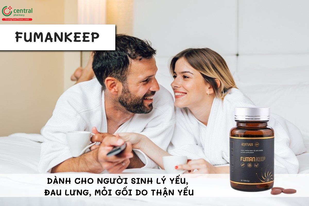 Fumankeep là một sản phẩm bổ sung sức khỏe sinh lý nam giới được nghiên cứu và phát triển với công thức đặc biệt từ các thành phần dược liệu an toàn, nhằm hỗ trợ cải thiện chức năng sinh lý, bổ thận, tráng dương và tăng cường sinh lực phái mạnh.