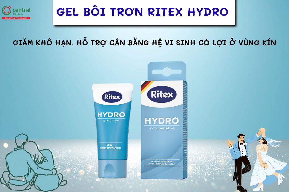 - Gel Ritex Hydro là sản phẩm gel bôi trơn gốc nước, dễ dàng thấm vào da và không để lại cảm giác nhờn rít.