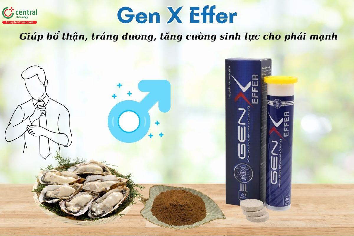 Viên sủi Gen X Effer giúp bổ thận, tráng dương, tăng cường sinh lực và cải thiện chức năng sinh lý nam giới. Sản phẩm còn hỗ trợ làm chậm quá trình mãn dục sớm, giúp duy trì phong độ và sức khỏe sinh lý ổn định.