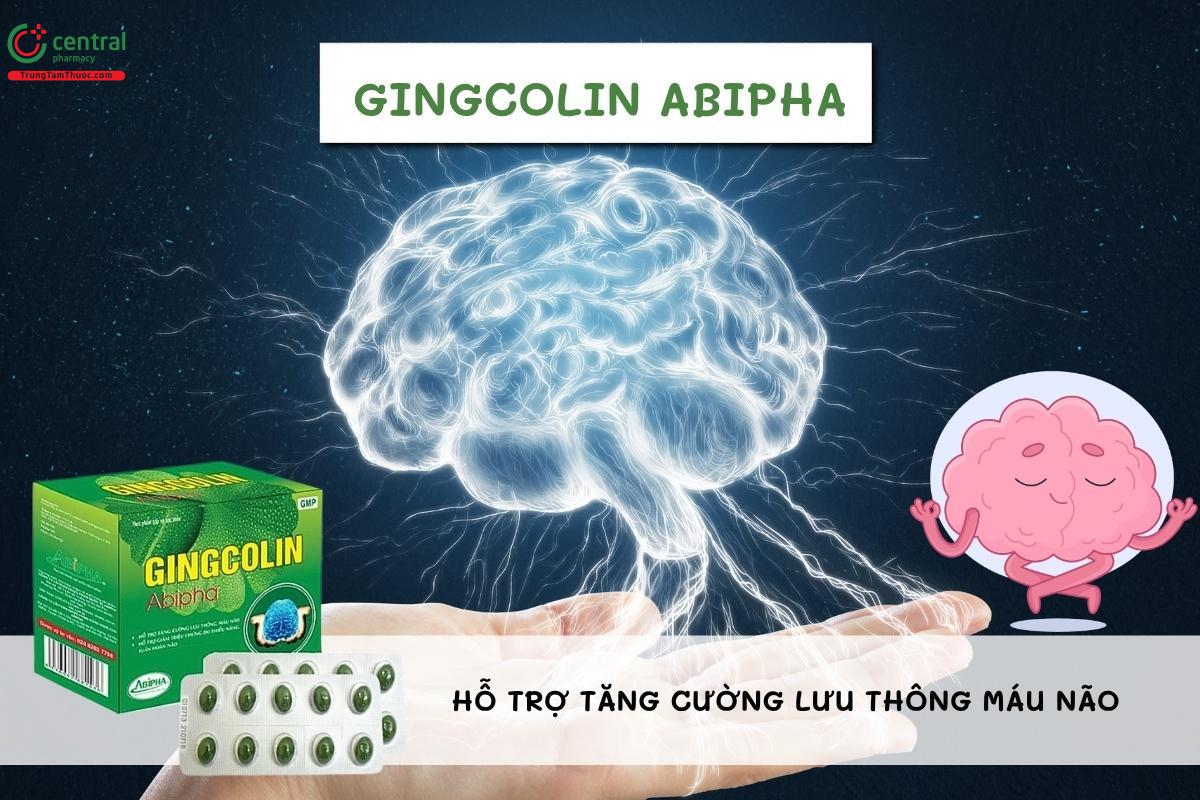 Gingcolin Abipha chứa Cao khô Bạch quả, Cao khô Đinh lăng kết hợp với các hoạt chất như Magnesi oxyd, Citicolin…có công dụng hoạt huyết, giúp hỗ trợ: