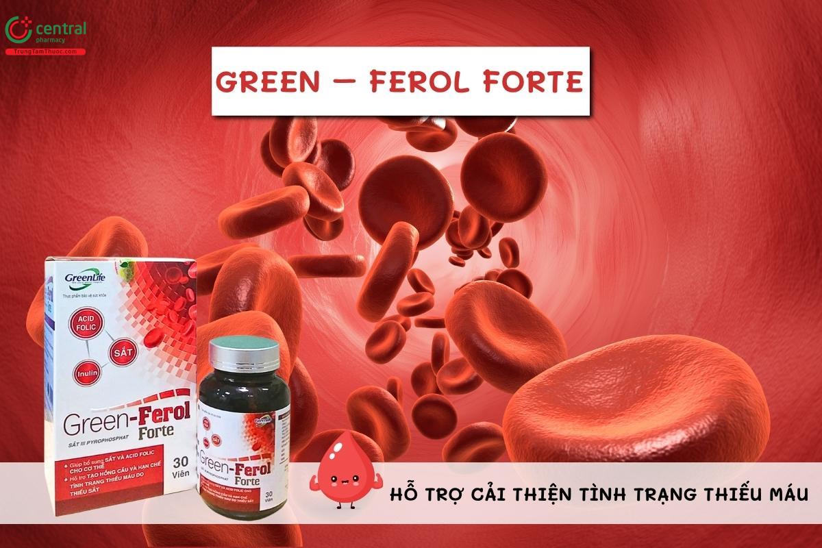 Green - Ferol Forte giúp bổ sung các dưỡng chất để hỗ trợ tạo hồng cầu như Sắt và Acid Folic. Từ đó hỗ trợ hạn chế và cải thiện tình trạng thiếu máu do thiếu sắt.