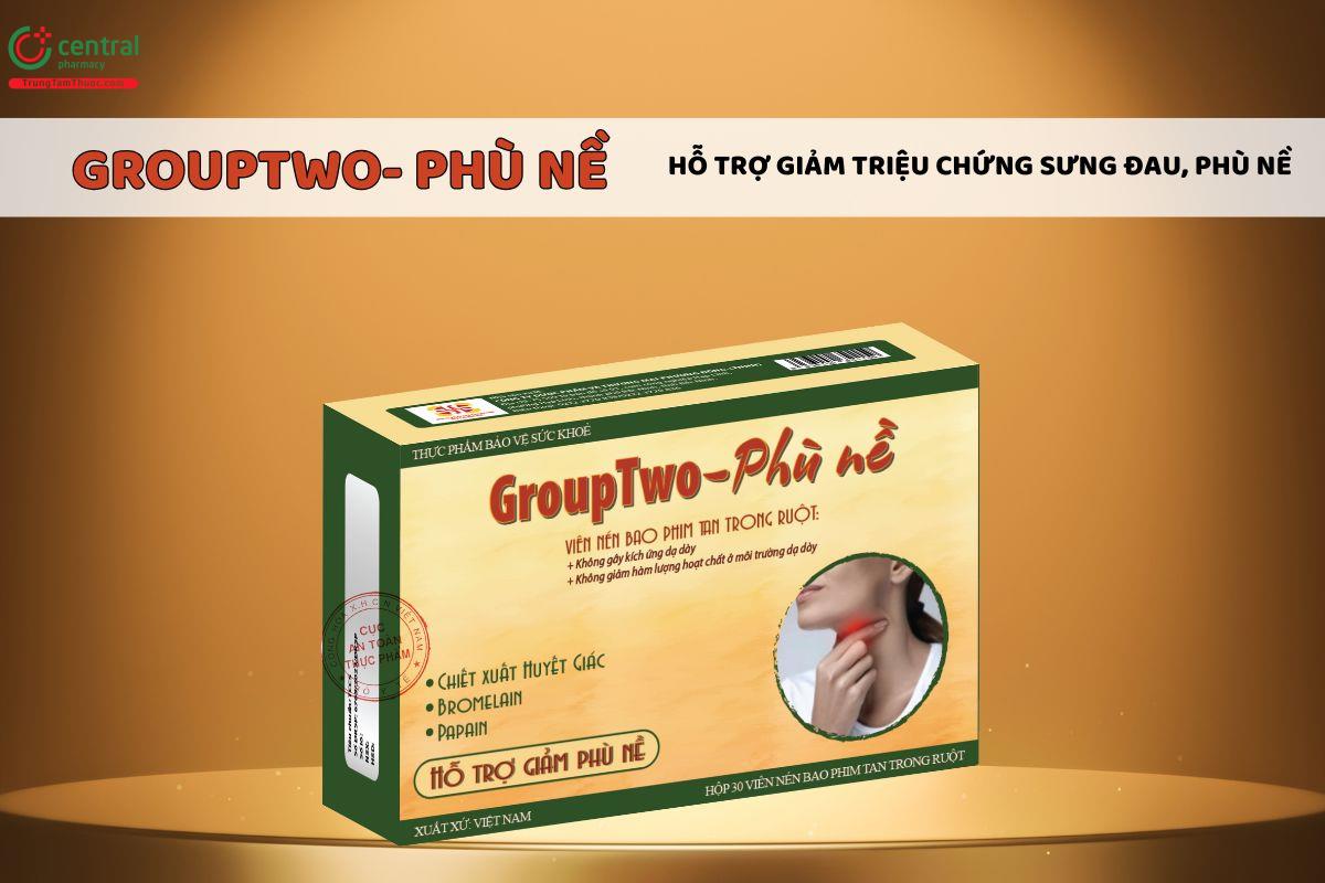Viên uống GroupTwo- Phù nề được sử dụng cho người lớn và trẻ em từ 6 tuổi trở lên bị phù nề, sưng đau do viêm như viêm phế quản, viêm họng, chấn thương phần mềm.