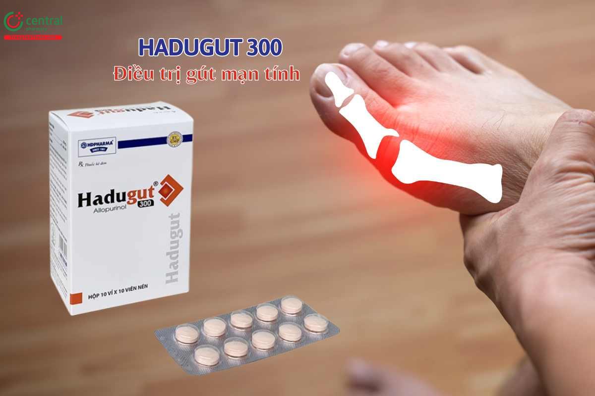 - Hadugut 300 có tác dụng giảm acid uric trong máu, hiệu quả điều trị các triệu chứng bệnh gút mạn tính.