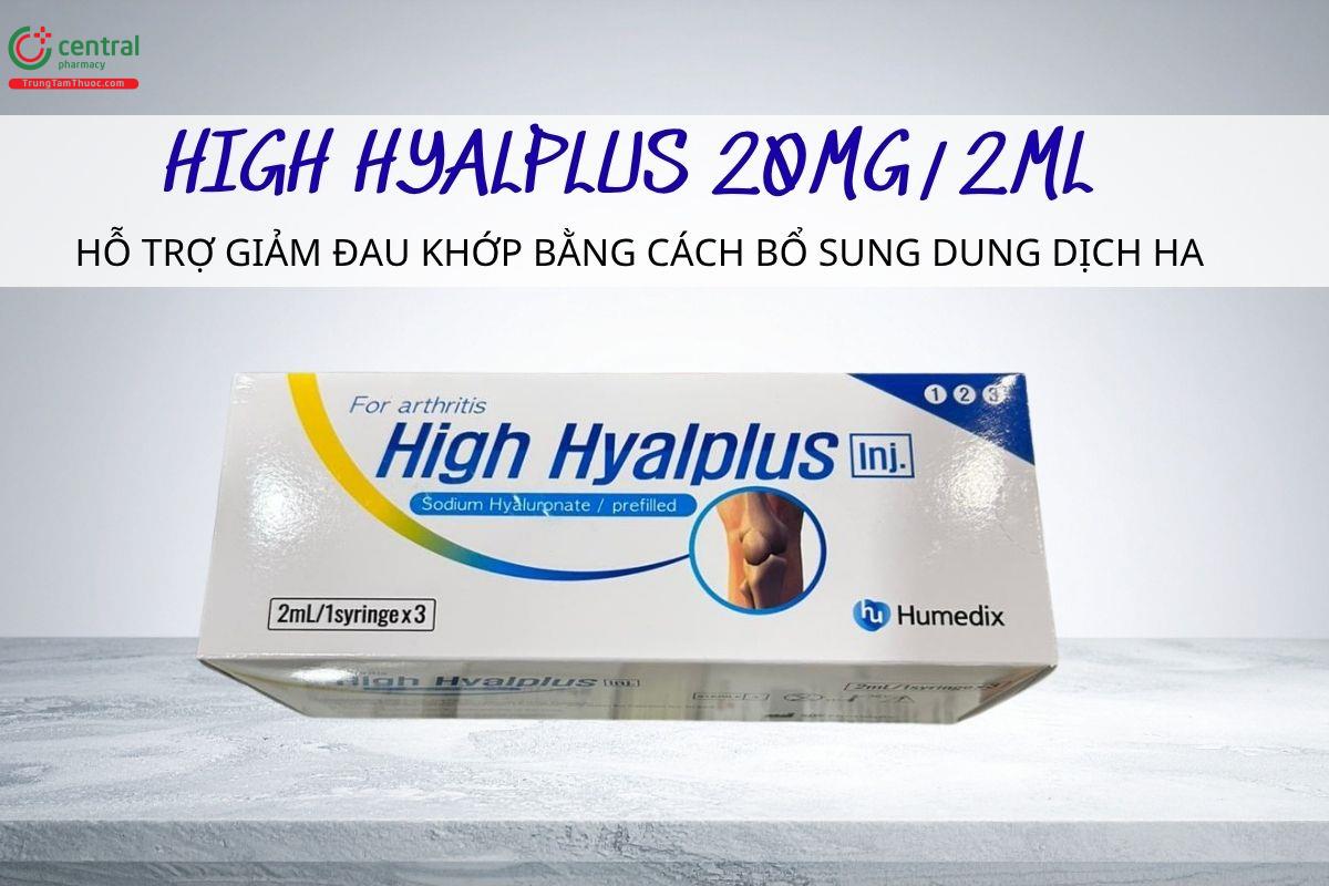 High Hyalplus 20mg/2ml được sử dụng để hỗ trợ giảm đau trong viêm xương khớp (viêm khớp) đầu gối. Sử dụng ở những bệnh nhân không cải thiện với các biện pháp không dùng thuốc hoặc đáp ứng kém với thuốc giảm đau thông thường như Acetaminophen, bằng cách bổ sung dung dịch Hyaluronic Acid.