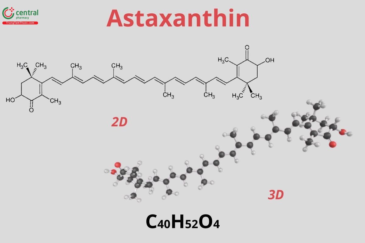 Astaxanthin là một keto-carotenoid thuộc nhóm xanthophyll, có cấu trúc chứa hai nhóm hydroxyl và hai nhóm ketone giúp phân tử ổn định và tăng khả năng trung hòa các gốc tự do. Nhờ cấu trúc phân cực ở hai đầu và phần giữa kỵ nước, Astaxanthin có thể gắn vào màng tế bào theo chiều ngang, từ đó bảo vệ màng trước tác động oxy hóa cả bên trong lẫn bên ngoài.