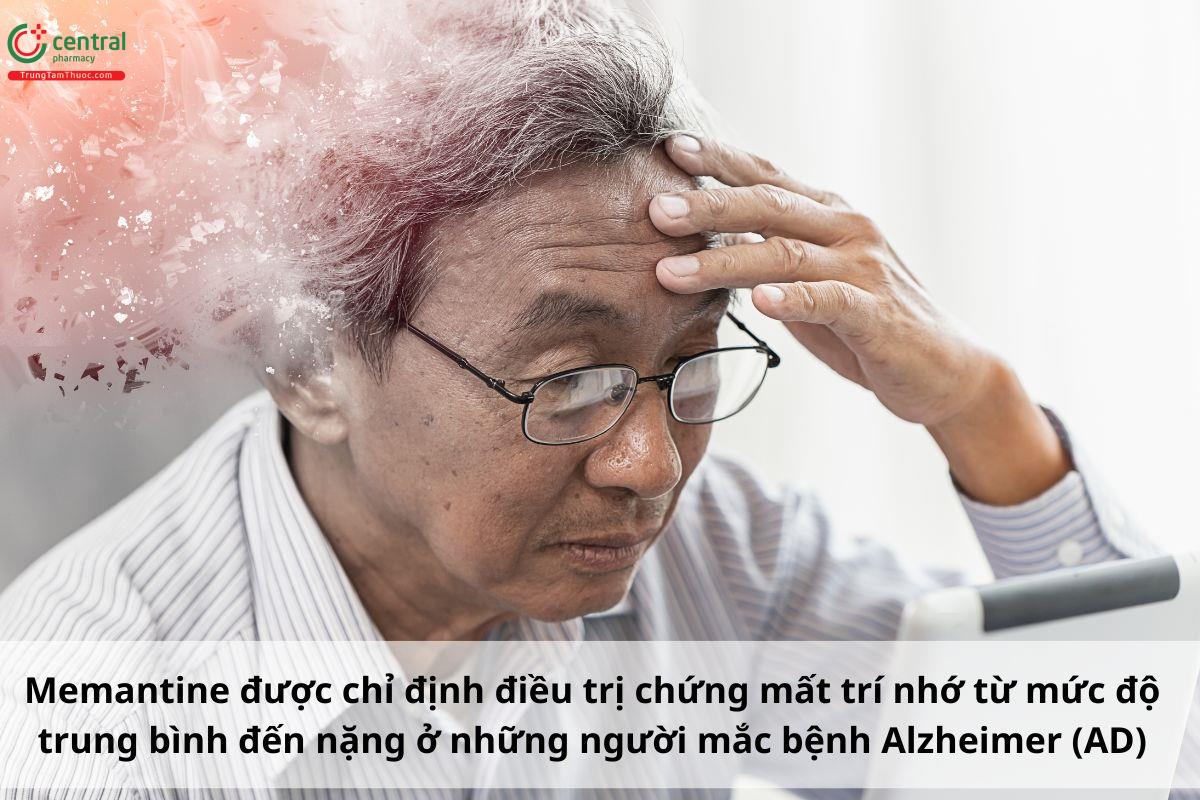 Điều trị chứng mất trí nhớ từ mức độ trung bình đến nặng ở những người mắc bệnh Alzheimer (AD) ở người lớn.