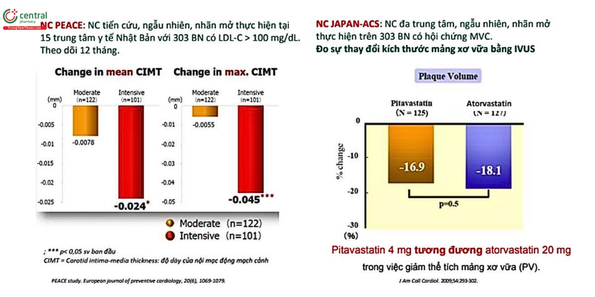 NC PEACE: NC tiến cứu, ngẫu nhiên, nhãn mở thực hiện tại 15 trung tâm y tế Nhật Bản với 303 BN có LDL-C > 100 mg/dL. Theo dõi 12 tháng.