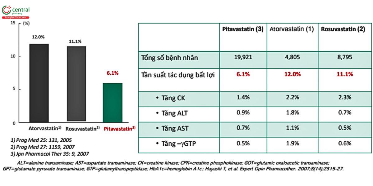 Pitavastatin dung nạp tốt và an toàn khi so sánh với các statin khác