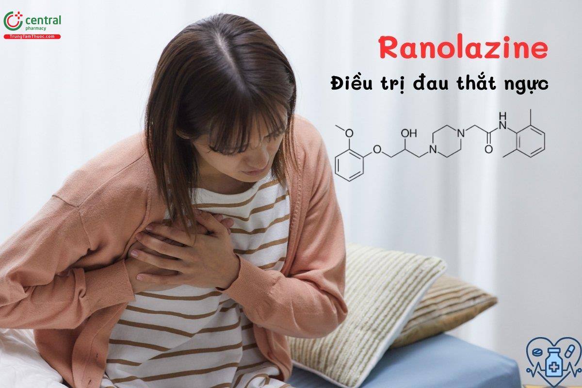 Ranolazine được sử dụng ở người lớn để điều trị đau thắt ngực mãn tính, không dùng trong trường hợp cấp tính. Chỉ dùng khi bệnh nhân không đáp ứng đủ hoặc không dung nạp hoặc các phương pháp đầu tay.