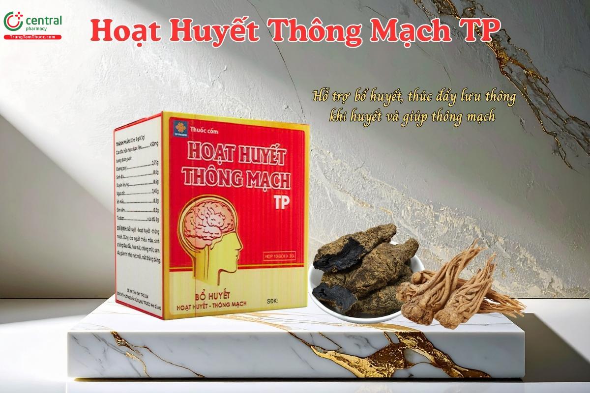 Thuốc cốm Hoạt Huyết Thông Mạch TP có tác dụng hỗ trợ bổ huyết, thúc đẩy lưu thông khí huyết và giúp thông mạch. Thường được sử dụng cho người bị thiếu máu với các biểu hiện như đau đầu, hoa mắt, chóng mặt, da sạm màu, suy giảm trí nhớ, cơ thể mệt mỏi.