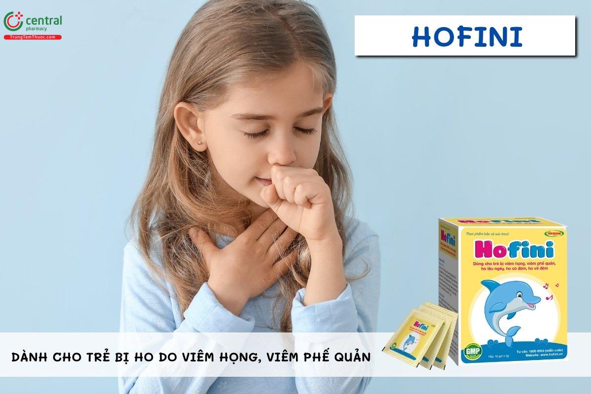 Hofini được sử dụng cho trẻ bị viêm họng, viêm phế quản, có các triệu chứng ho như ho có đờm, ho lâu ngày không khỏi, ho về đêm…