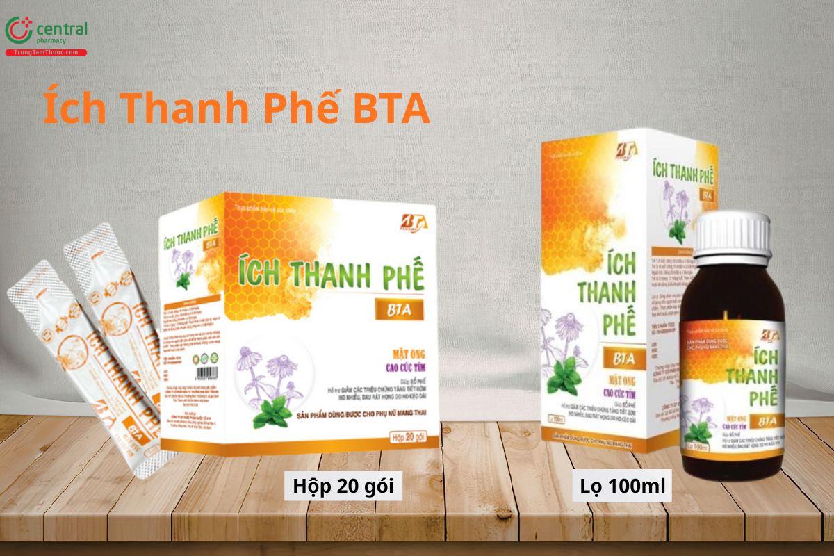 - Ích Thanh Phế BTA hỗ trợ giảm ho, giảm tăng tiết đờm, cải thiện chức năng hô hấp nhờ sự kết hợp từ các thành phần thảo dược, có tính an toàn cao, phù hợp dùng cho cả trẻ nhỏ, phụ nữ mang thai và người trưởng thành.