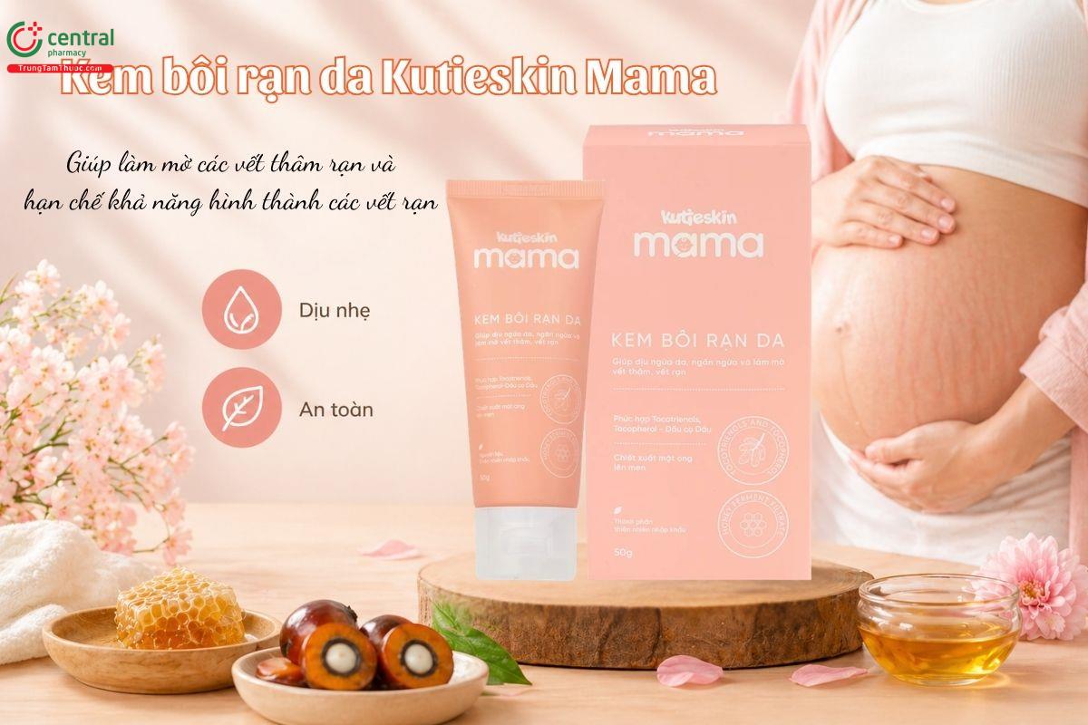Kem bôi rạn da Kutieskin Mama giúp làm mờ vết thâm rạn da và giúp da trở nên mịn màng hơn. Đồng thời, góp phần hạn chế hình thành vết rạn mới. Hỗ trợ dưỡng ẩm, giúp da mềm mại và giảm cảm giác ngứa tại những vùng da bị rạn.