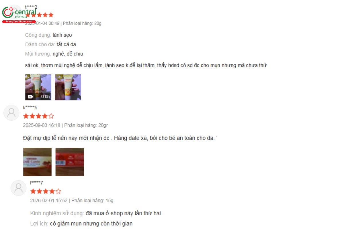 - Làm dịu da, hạn chế thâm mụn, làm mờ sẹo khi bị: mụn, rôm sảy, trầy xước da, rạn da, nám da, muỗi đốt, côn trùng cắn, các vết bỏng nhẹ, nứt nẻ khô da.