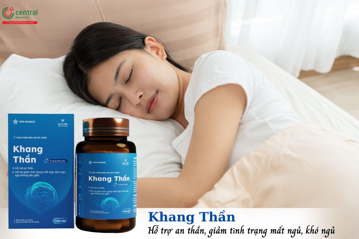 Sản phẩm Khang Thần có công dụng hỗ trợ an thần, cải thiện chất lượng giấc ngủ, giúp giảm tình trạng khó ngủ, mất ngủ, mang lại giấc ngủ ngon tự nhiên.
