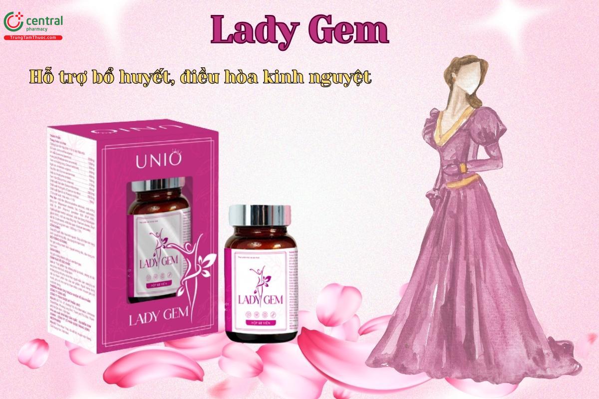 Viên uống Lady Gem giúp bổ huyết, điều hòa kinh nguyệt, hỗ trợ giảm đau bụng và rối loạn kinh nguyệt ở nữ giới.