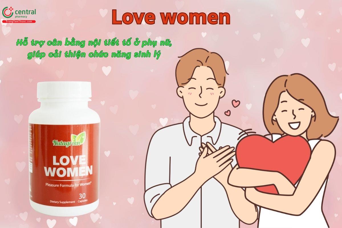 Sản phẩm Love Women được khuyến nghị dành cho phụ nữ từ 18 tuổi trở lên, đặc biệt là những người mong muốn cải thiện sức khỏe sinh lý. Đồng thời, sản phẩm cũng phù hợp với phụ nữ gặp tình trạng khô âm đạo, rối loạn kinh nguyệt hoặc đang trong giai đoạn tiền mãn kinh và mãn kinh.