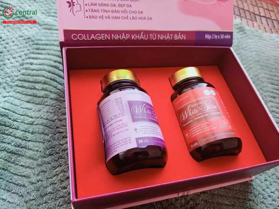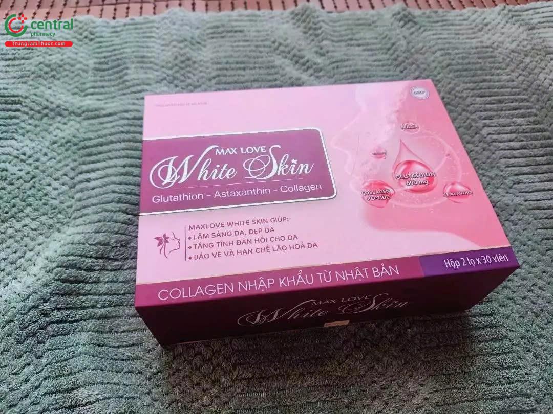 Max Love White Skin giúp bổ sung Glutathion, Collagen peptide và Vitamin E, góp phần tăng cường khả năng chống oxy hóa nội sinh cho cơ thể.