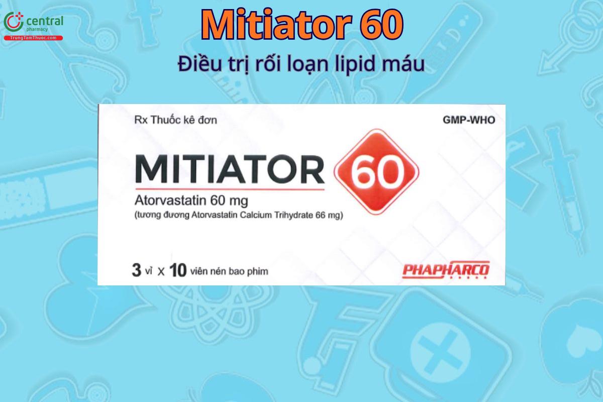 Lưu ý: Viên Mitiator 60 chứa 60mg Atorvastatin, đây là hàm lượng cao, thường dành cho bệnh nhân cần liều điều trị tích cực hoặc theo chỉ định riêng của bác sĩ.