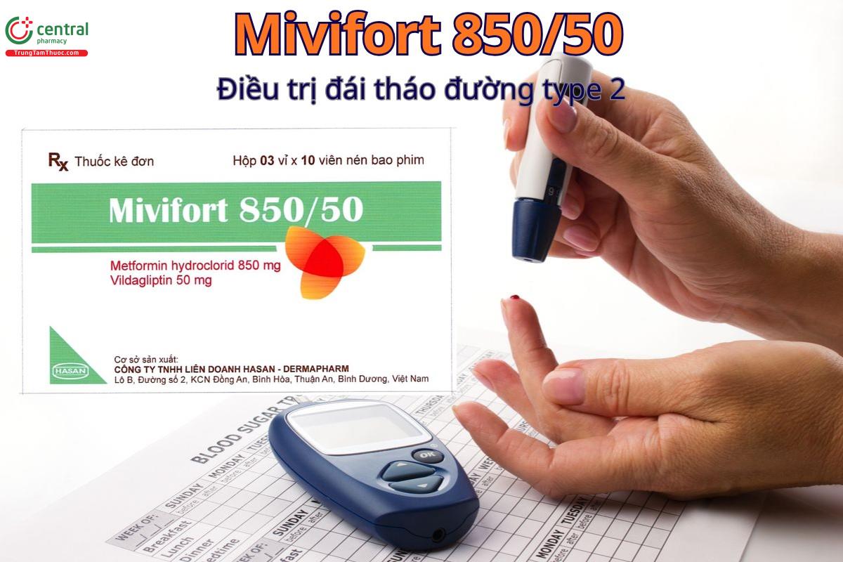 Thuốc Mivifort 850/50 được chỉ định dùng hỗ trợ cho chế độ ăn kiêng và luyện tập để cải thiện kiểm soát đường huyết ở bệnh nhân đái tháo đường tuýp 2 trong các trường hợp: