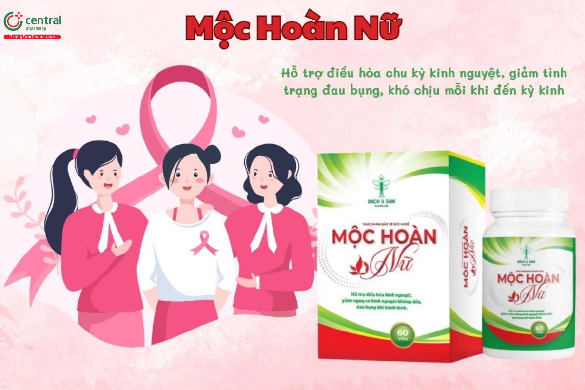 Viên uống Mộc Hoàn Nữ giúp hỗ trợ cân bằng và điều hòa chu kỳ kinh nguyệt, đồng thời làm giảm tình trạng đau bụng, khó chịu mỗi khi đến kỳ kinh.