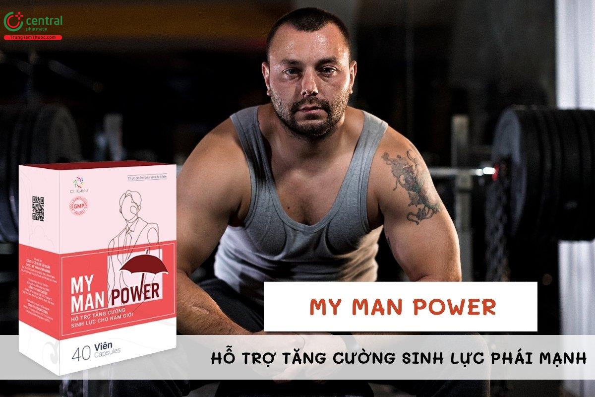 My Man Power chứa thành phần hoàn toàn từ thiên nhiên, được thiết kế hỗ trợ tăng cường sinh lực cho phái mạnh, đồng thời hỗ trợ hạn chế nguy cơ mãn dục nam.