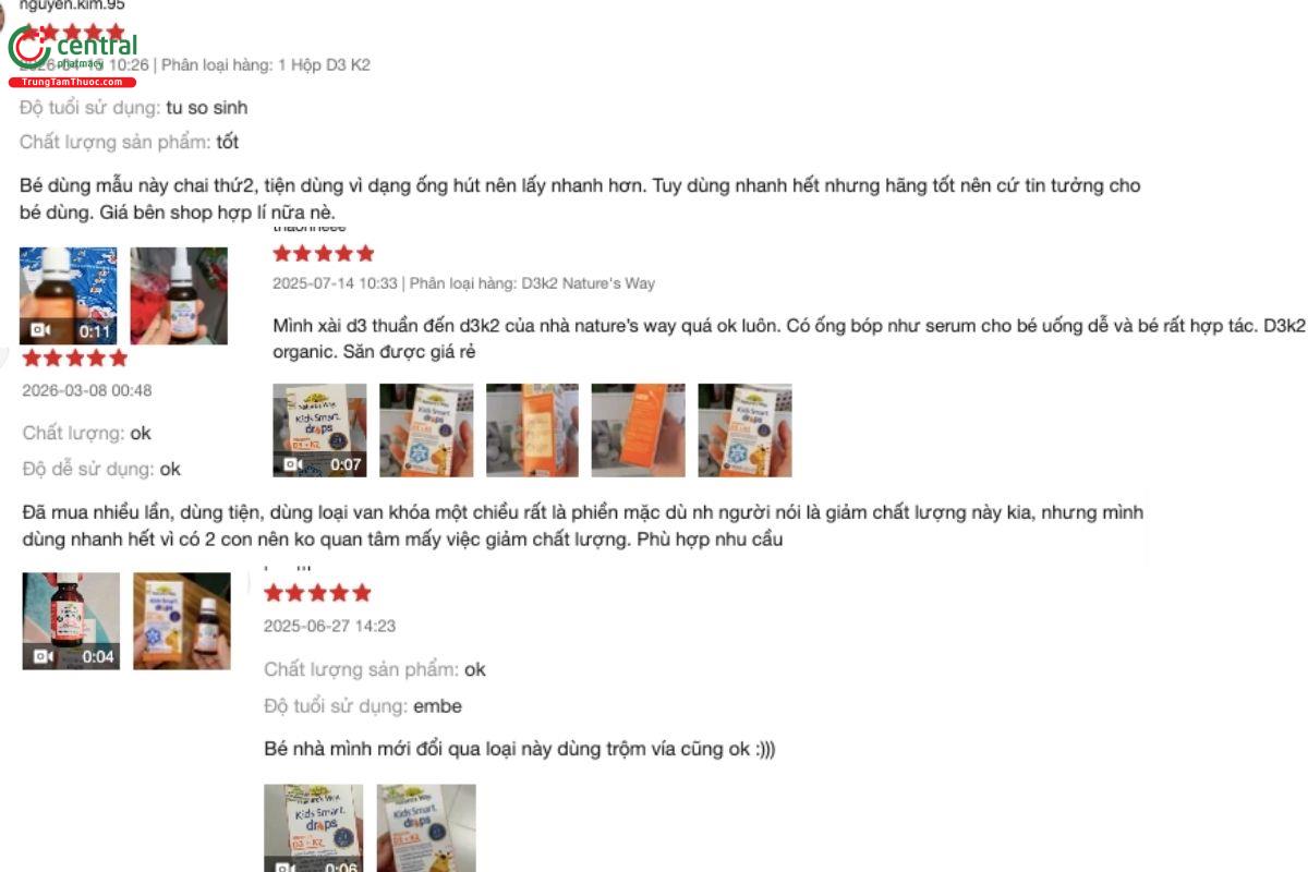 Thông tin về tác dụng phụ của Nature's Way Kids Smart Drops Vitamin D3 + K2 chưa được ghi nhận cho đến nay