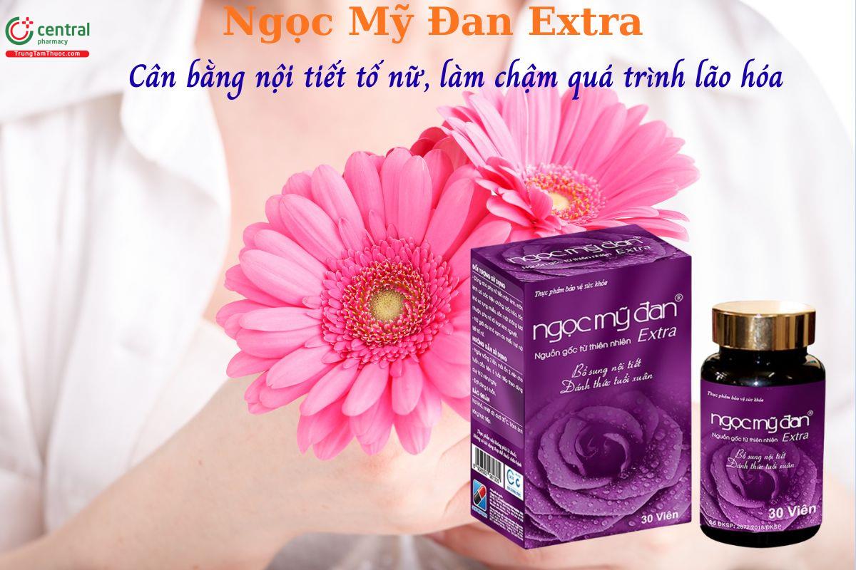 - Ngọc Mỹ Đan Extra không chỉ hỗ trợ cân bằng nội tiết tố nữ, cải thiện triệu chứng khó chịu trong giai đoạn tiền mãn kinh và mãn kinh mà còn làm chậm quá trình lão hóa, duy trì sự tươi trẻ cho làn da.