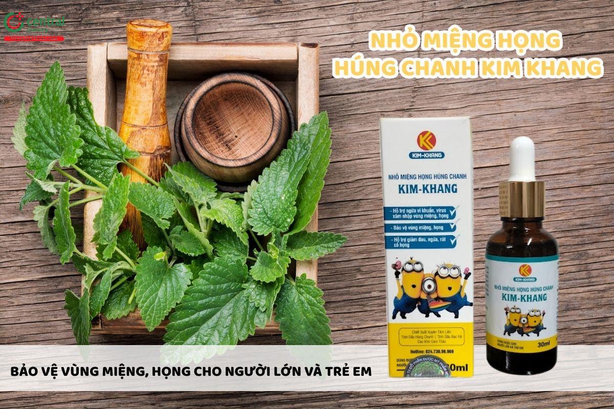 Nhỏ miệng họng Húng chanh Kim Khang là Dung dịch dùng tại chỗ vùng miệng họng, phối hợp thảo dược và tinh dầu có đặc tính làm dịu niêm mạc, hỗ trợ vệ sinh khoang miệng họng và hỗ trợ hạn chế sự phát triển của vi sinh vật tại bề mặt niêm mạc.