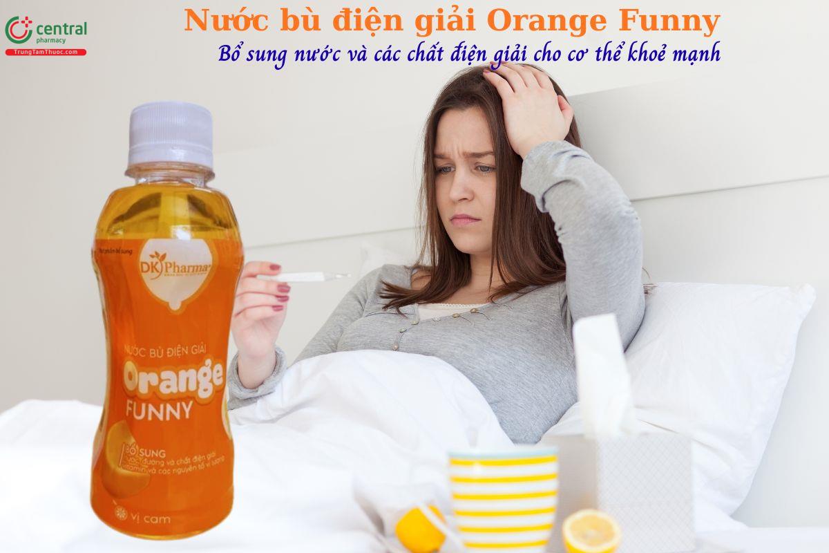 - Nước bù điện giải Orange Funny bổ sung nước, các chất điện giải và vitamin cần thiết giúp cơ thể phục hồi nhanh chóng, giảm tình trạng mệt mỏi, mất nước.