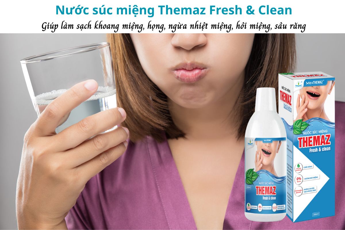 Nước Súc Miệng Themaz Fresh & Clean là sản phẩm làm sạch khoang miệng, họng, giúp hỗ trợ phòng ngừa và cải thiện các tình trạng nhiễm khuẩn trong khoang miệng như viêm nha chu, viêm nướu, viêm amidan, viêm họng, viêm lợi,...