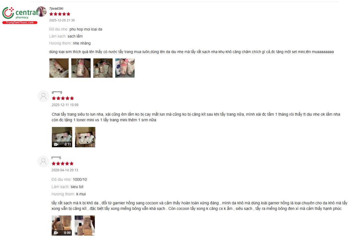 7 Đánh giá từ người dùng về Nước tẩy trang Cocoon sen Hậu Giang