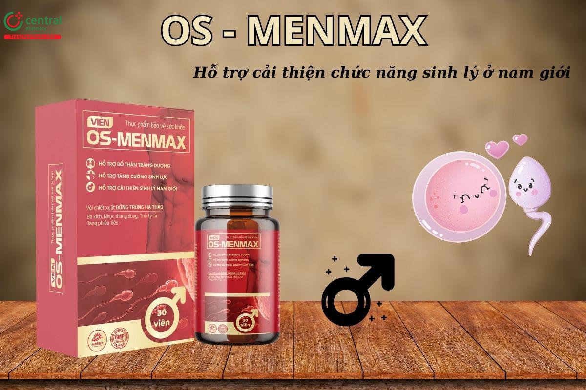 Viên uống OS - MENMAX được sử dụng nhằm hỗ trợ cải thiện chức năng sinh lý ở nam giới. Bên cạnh đó, sản phẩm còn góp phần tăng cường chức năng thận, nâng cao sức mạnh sinh lý.