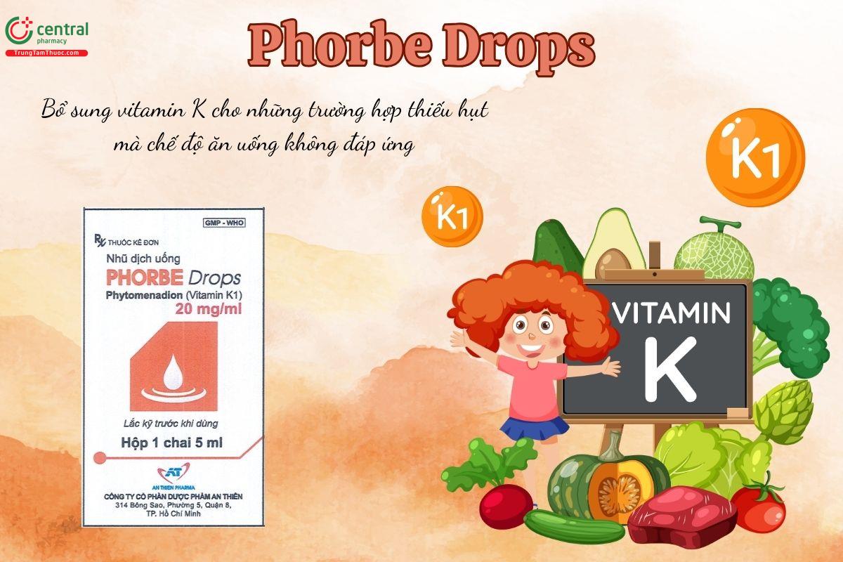 Thuốc Phorbe Drops được sử dụng để bổ sung vitamin K cho những trường hợp thiếu hụt mà chế độ ăn uống không đáp ứng. Sản phẩm thường được chỉ định trong các tình huống sau: