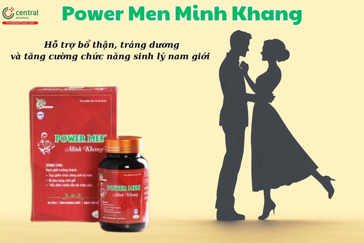 Viên uống Power Men Minh Khang dành cho nam giới, có công dụng hỗ trợ bổ thận, tráng dương và tăng cường chức năng sinh lý. Sản phẩm giúp cải thiện ham muốn, nâng cao sức bền và giảm nguy cơ mãn dục sớm ở nam giới.