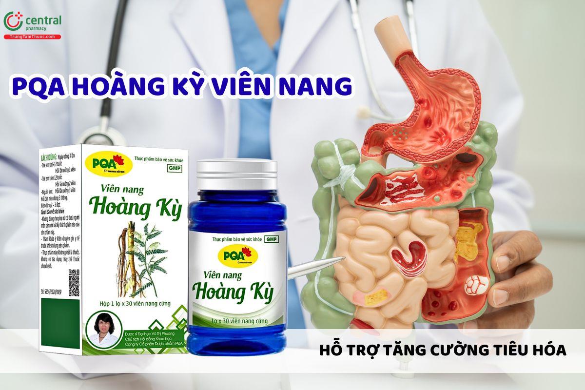 PQA Hoàng Kỳ Viên Nang giúp hỗ trợ tăng cường hệ tiêu hóa và cải thiện khả năng hấp thụ dinh dưỡng, từ đó giúp cơ thể khỏe mạnh hơn. Sản phẩm còn hỗ trợ tăng cường sức khỏe, giảm mệt mỏi, uể oải, đặc biệt trong những ngày làm việc căng thẳng hoặc thiếu ngủ, mang lại cảm giác sảng khoái và tỉnh táo.[1]