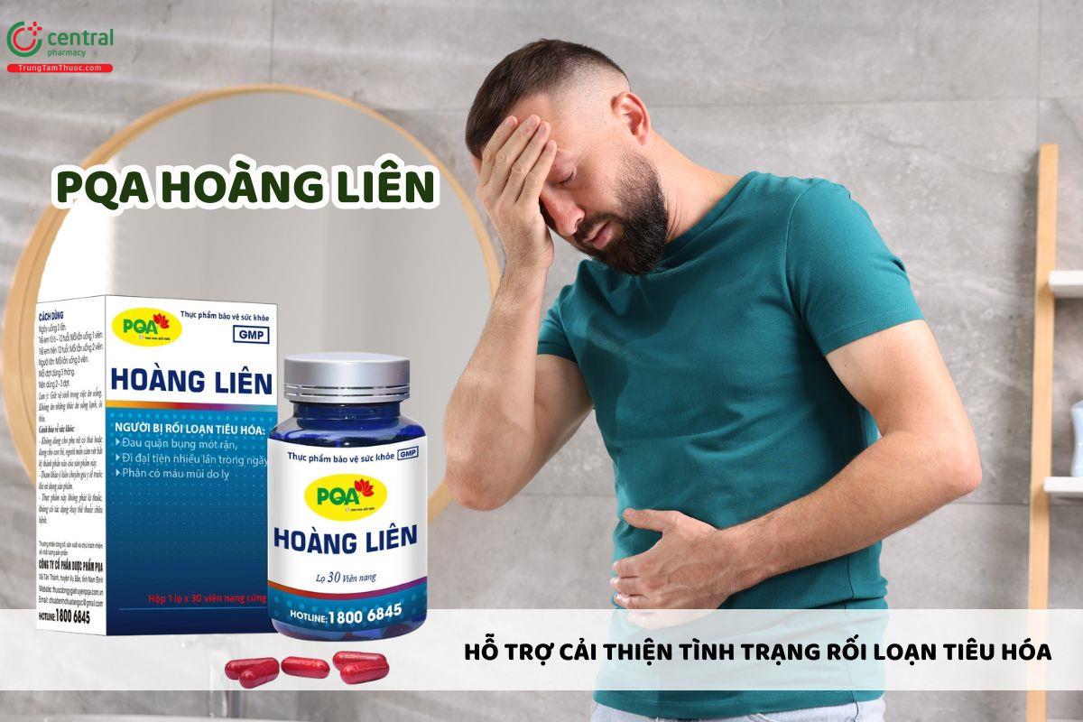 PQA Hoàng Liên với thành phần từ dược liệu y học cổ truyền an toàn, lành tính với công dụng hỗ trợ giảm tình trạng co thắt ruột, đau bụng đi ngoài có máu do lỵ.[1]