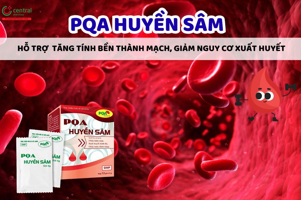 PQA Huyền Sâm hỗ trợ tăng cường tính bền vững của thành mạch, hỗ trợ giảm nguy cơ xuất huyết mạch máu, đồng thời thanh nhiệt, lương huyết, giúp cơ thể làm mát, giải độc và duy trì sự ổn định trong hệ tuần hoàn.