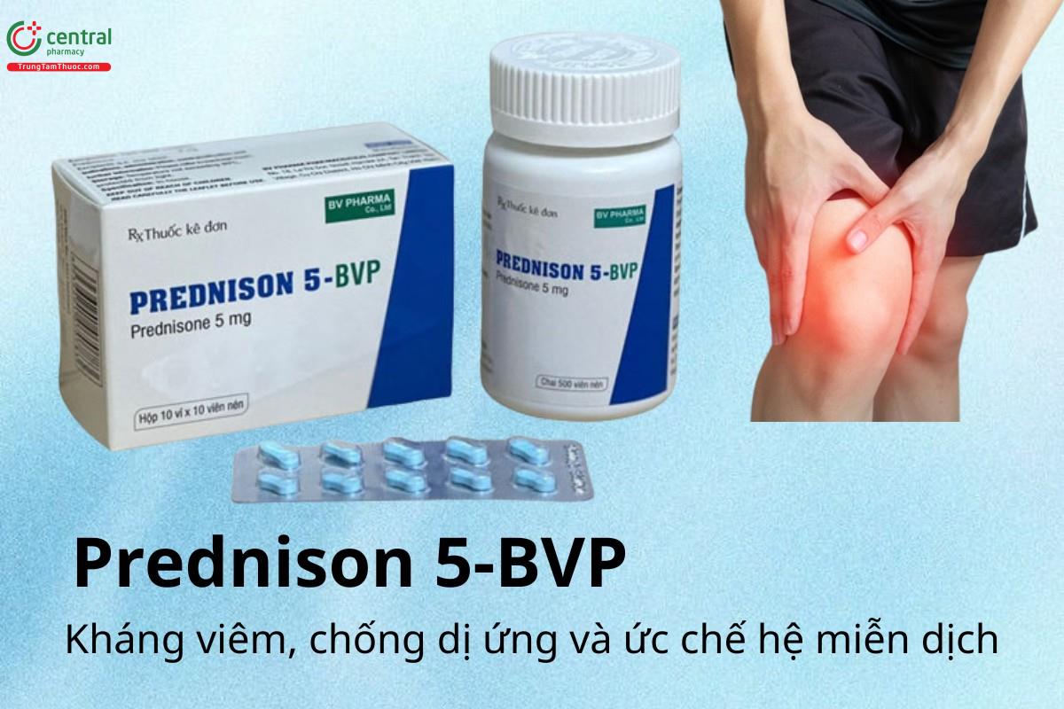 Nếu sản phẩm Prednison 5-BVP hết hàng, quý khách hàng vui lòng tham khảo một sản phẩm có hoạt chất tương tự và hàm lượng tương đương: Thuốc Prednison Domesco 5mg tác dụng chống viêm, chống dị ứng và ức chế miễn dịch, được sản xuất bởi công ty dược phẩm Domesco.