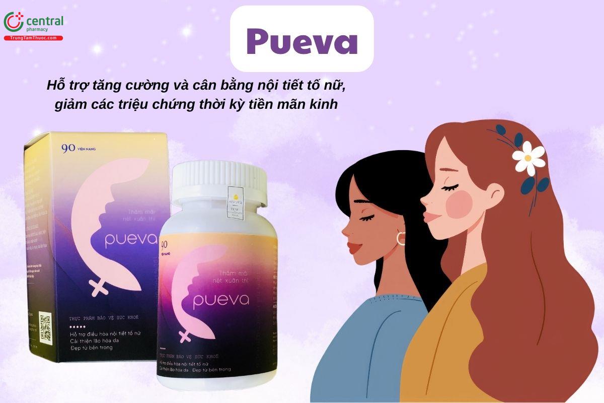 Viên uống Pueva được biết đến với tác dụng hỗ trợ tăng cường và cân bằng nội tiết tố nữ, giúp cải thiện tình trạng thiếu hụt hormone estrogen.