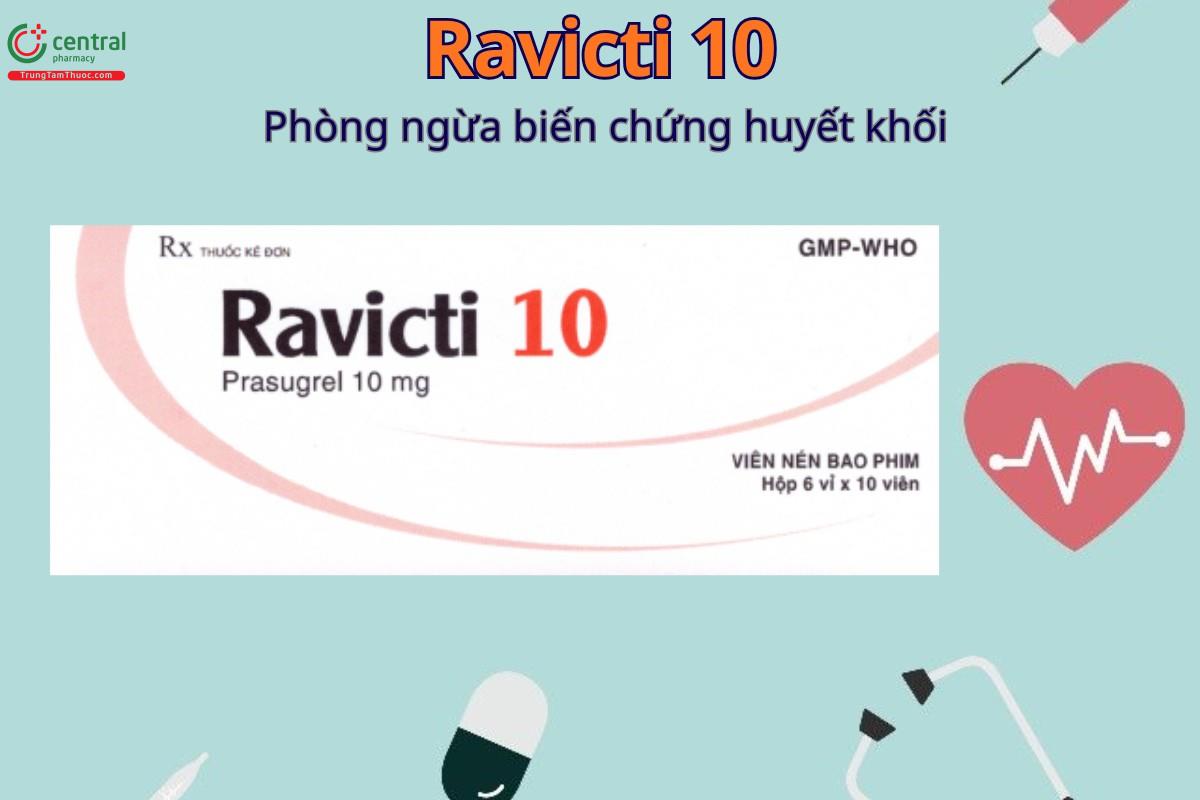 Nếu Ravicti 10 hết hàng hoặc cần liều thấp hơn (ví dụ cho bệnh nhân dưới 60kg hoặc người cao tuổi cần liều duy trì 5mg), quý khách có thể tham khảo Thuốc Jasugrel 5mg. Thuốc chứa Prasugrel 5mg, được chỉ định dự phòng huyết khối trong hội chứng vành cấp (UA, NSTEMI, STEMI) sau can thiệp PCI.