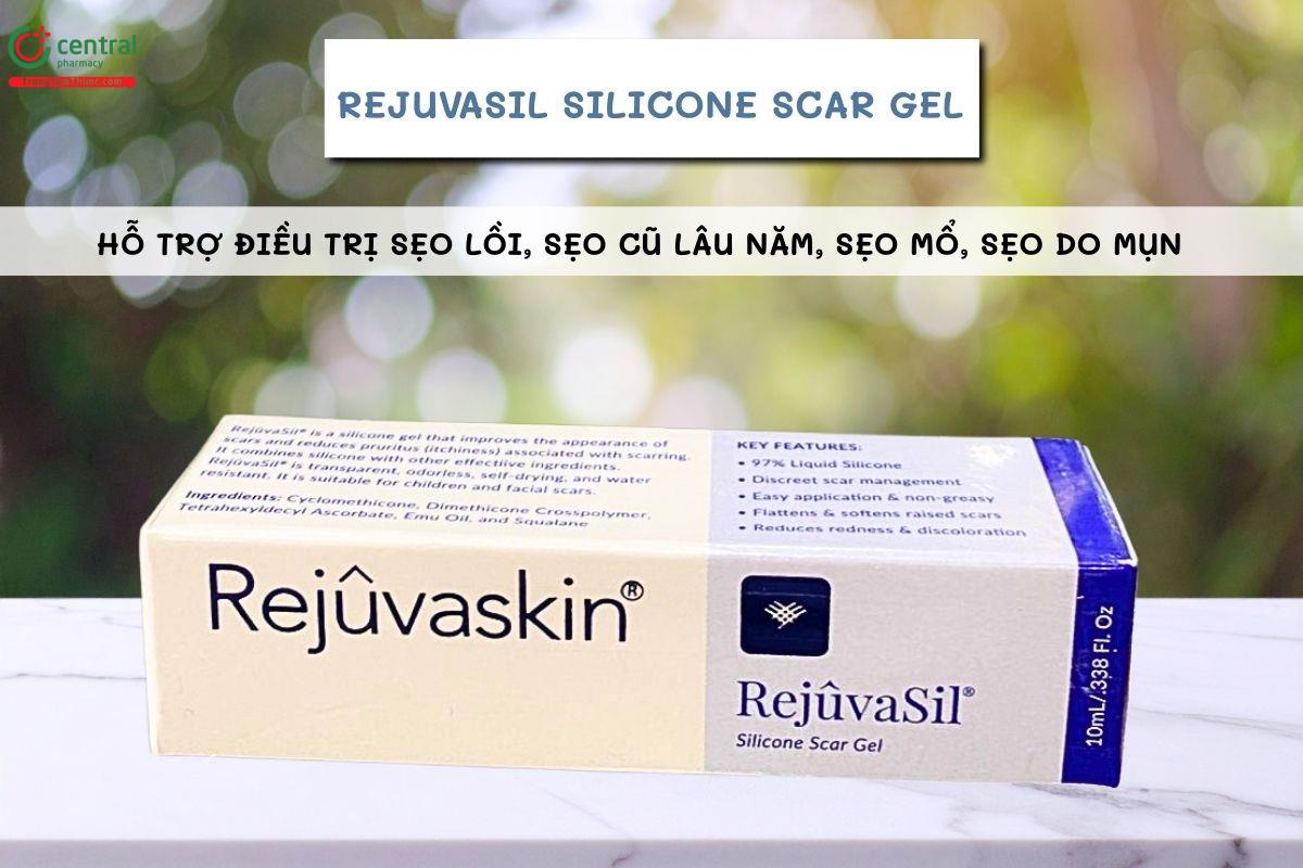 - Rejuvasil Silicone Scar Gel chứa sự kết hợp của silicone, emu oil, vitamin C và squalene giúp hỗ trợ làm mềm mô sẹo, tăng cường độ ẩm và thúc đẩy quá trình tái tạo da, từ đó góp phần cải thiện tình trạng sẹo lồi, sẹo phì đại và sẹo sau phẫu thuật.