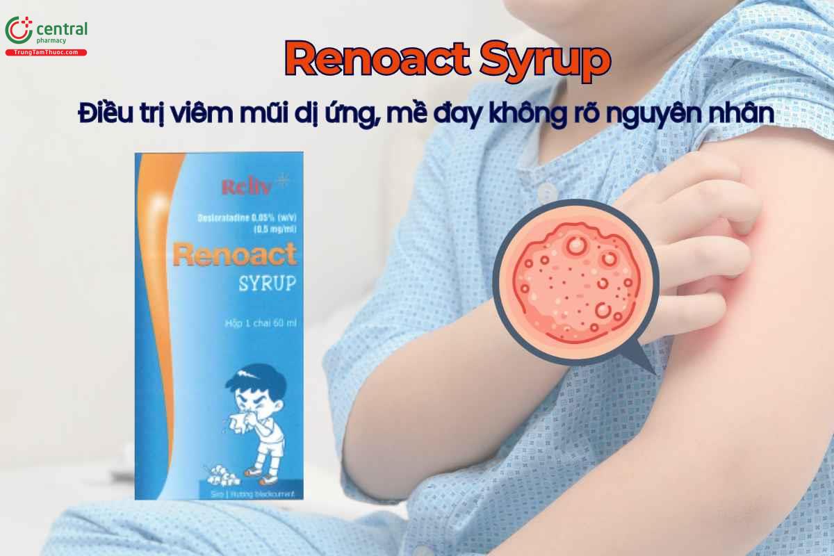 Siro Renoact Syrup được chỉ định điều trị các triệu chứng liên quan của viêm mũi dị ứng, mề đay không rõ nguyên nhân ở trẻ nhỏ trên 1 tuổi và người lớn. [1].