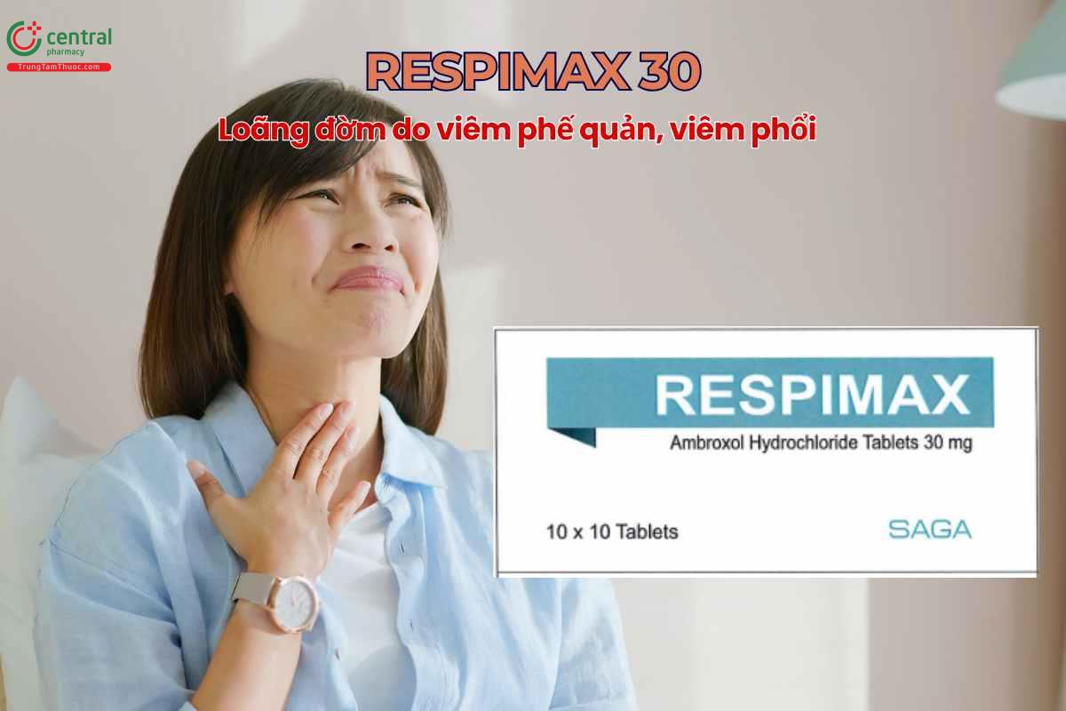 - Thuốc Respimax 30 hỗ trợ làm loãng đờm, tạo điều kiện tống đờm ra ngoài dễ dàng, đồng thời hỗ trợ giảm viêm, sưng họng trong bệnh lý đường hô hấp.