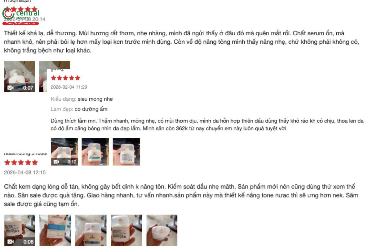 - Texture mỏng nhẹ, dễ tán, nhanh ráo trên da, không làm lộ màu, phù hợp dùng trước khi makeup.