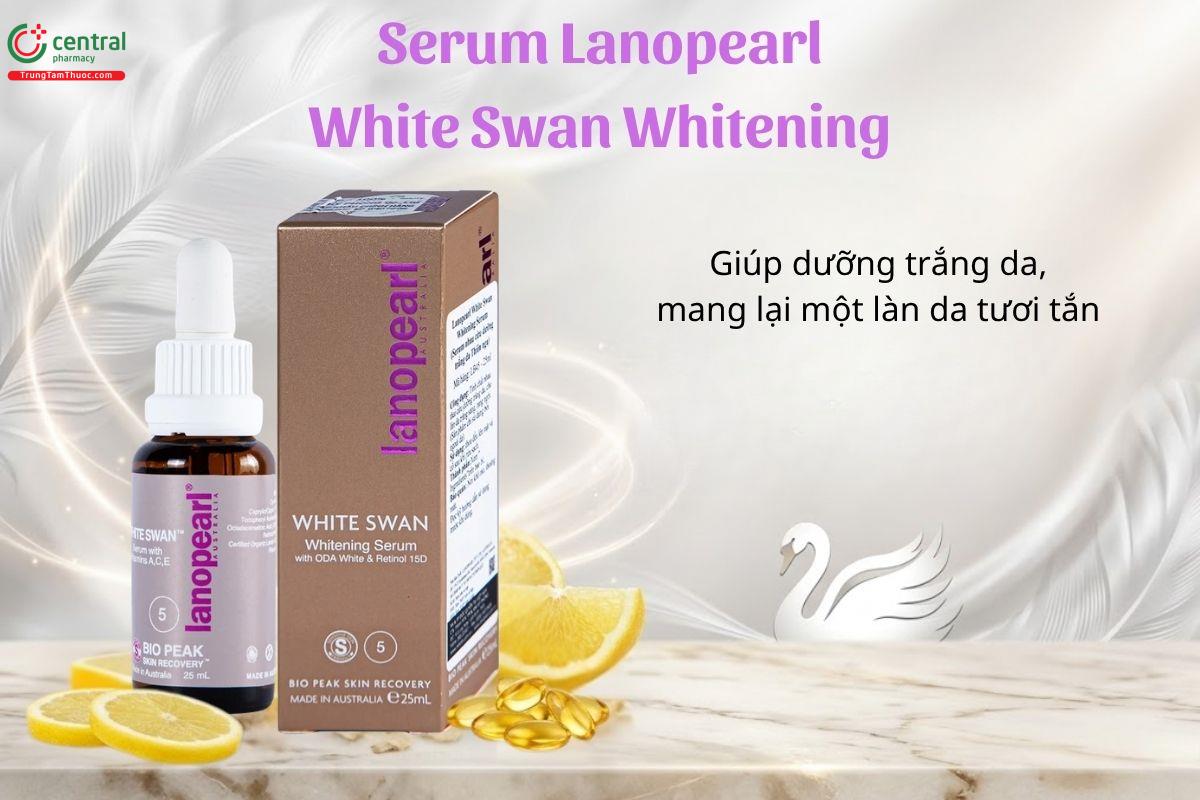 Serum Lanopearl White Swan Whitening giúp nuôi dưỡng và hỗ trợ làm sáng da, mang lại làn da tươi tắn, rạng rỡ hơn.