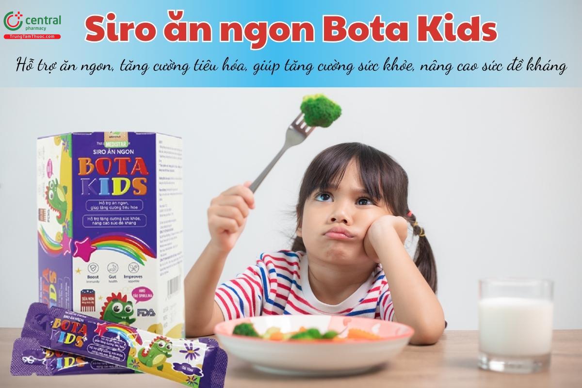 Siro Ăn Ngon Bota Kids chính hãng giúp trẻ ăn uống ngon miệng hơn, đồng thời hỗ trợ cải thiện chức năng tiêu hóa, tăng cường sức khỏe tổng thể và nâng cao khả năng miễn dịch.